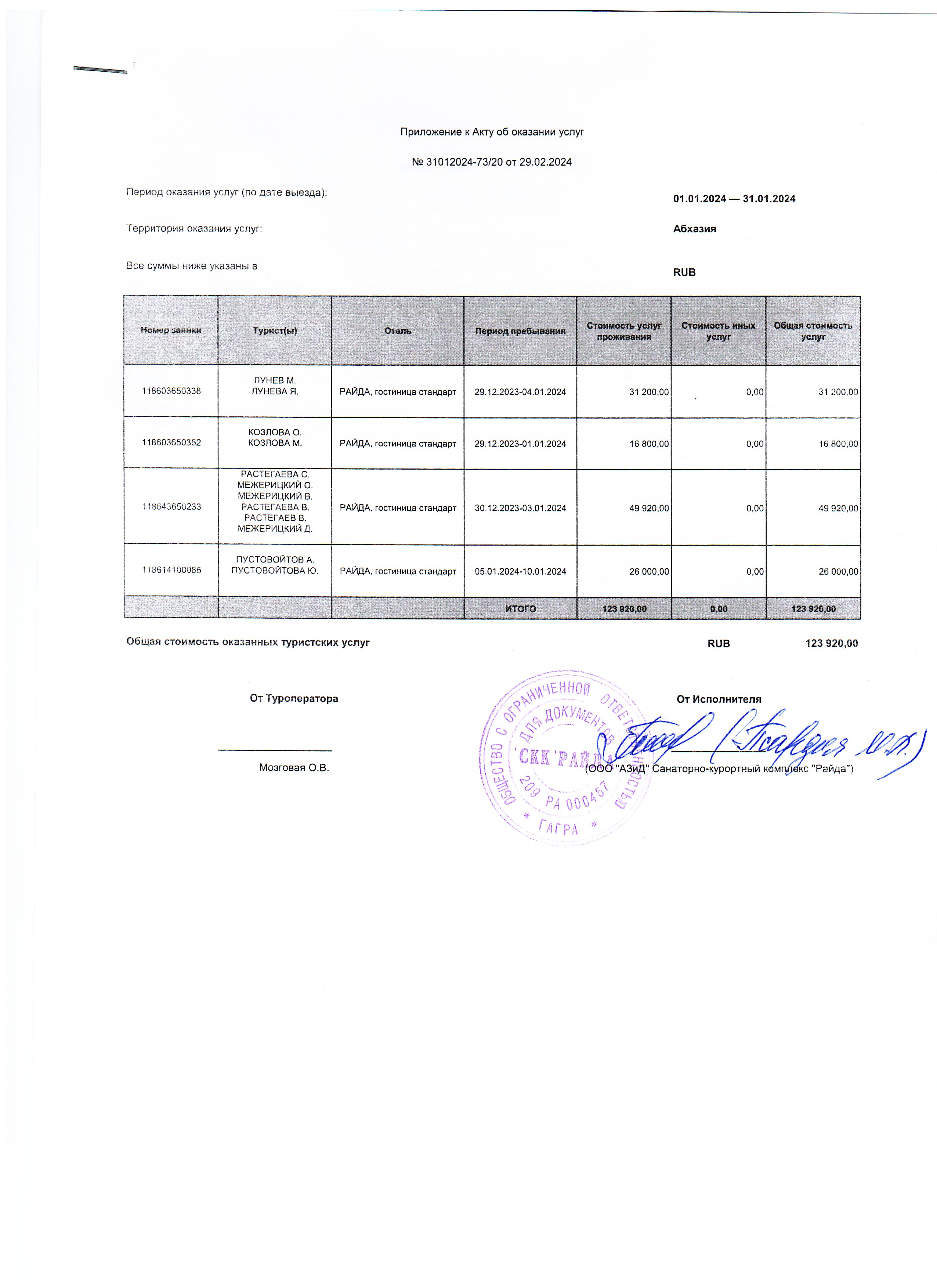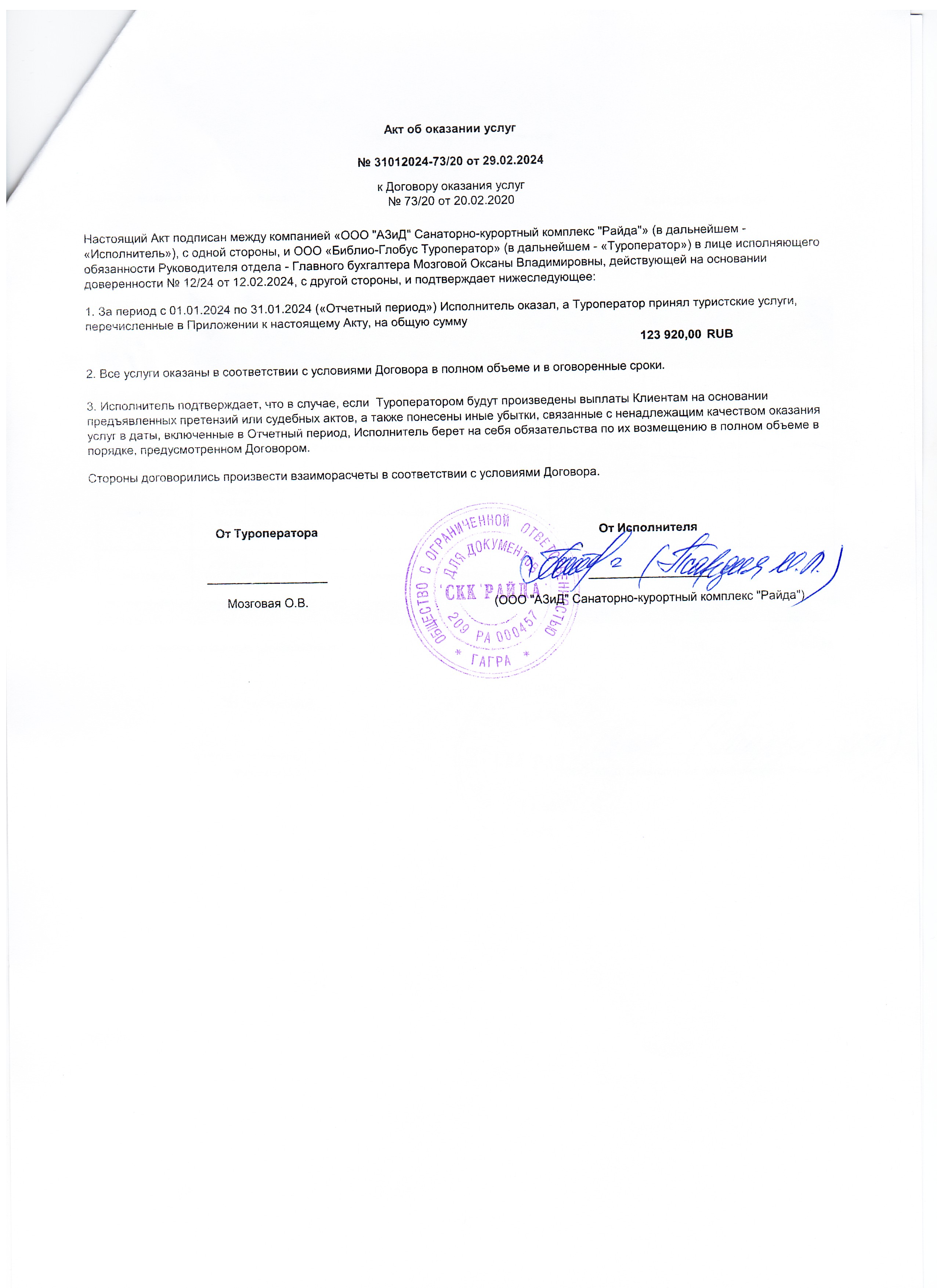 ООО АЗиД Санаторно-курортный комплекс Райда акт об оказании услуг.jpg